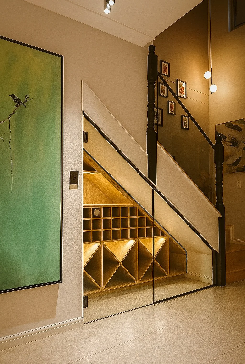 Custom stairway wine cellar